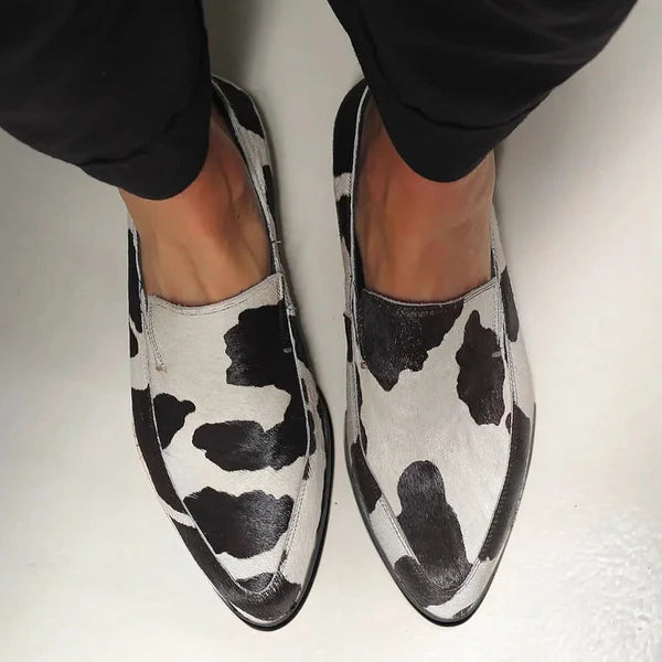 Upper : Premium leather with hair, printed with a black and white animal print for a striking, fashionable look.