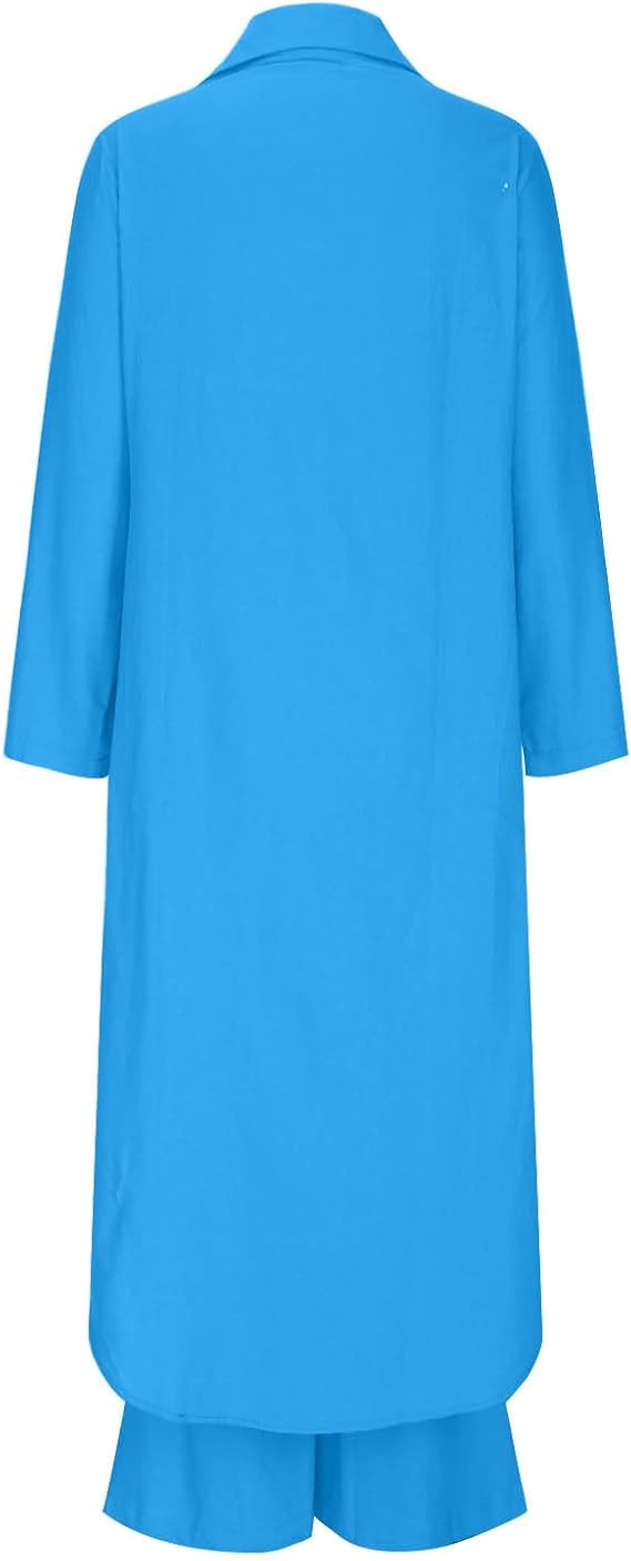 The Vivi Set consists of a long shirt dress and matching linen trousers – together they create a complete, airy look with a relaxed, luxurious feel. Made from 100% European linen, this set not only feels wonderfully cool against the skin but also offers a natural elegance that’s perfect for summer days and evenings.