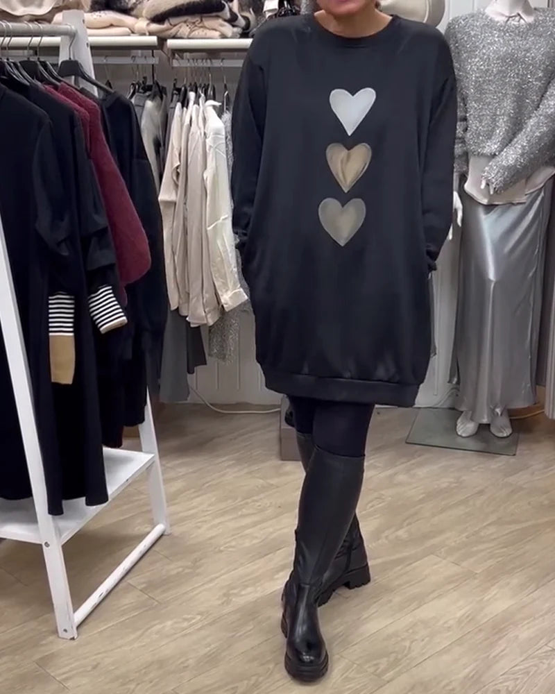 - Style : Crew neck, long sleeve, relaxed fit, heart print